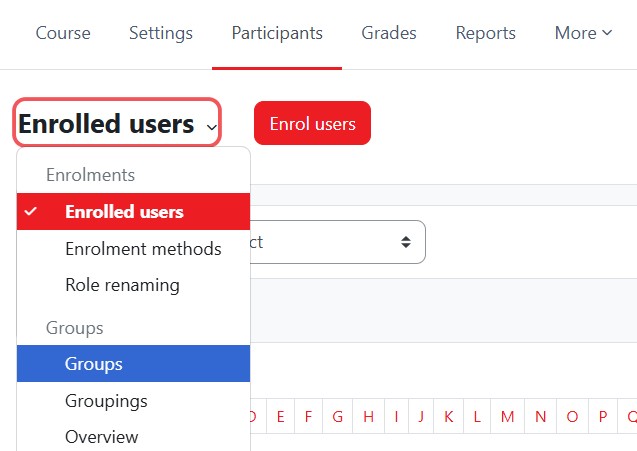 A grouping is a collection of groups within a module. Using groupings allows you to direct tasks at one or more groups in your module, so that they can work together on the tasks. Example, you wish the students to work on a project, exploring passive and active language. You create a grouping Passive Language and assign the Listening and Reading groups to this grouping. You create a grouping Active Language and assign the Speaking and Writing groups to this grouping.