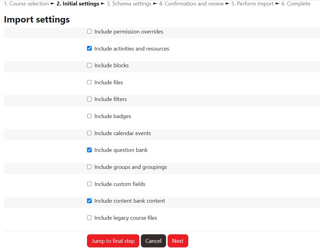 Step 5 : Next, you will see a page with options on what type of data to be included in the import. By default, all the items will be toggled on(selected).