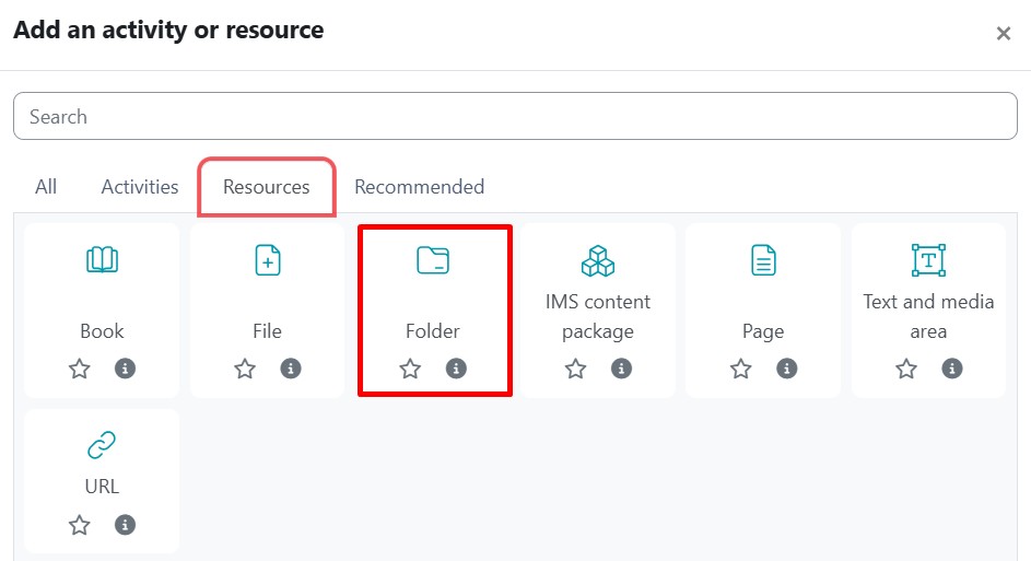 Step 4 : Go to the Resources tab and click the Folder icon. The Adding a new Folder page will open.