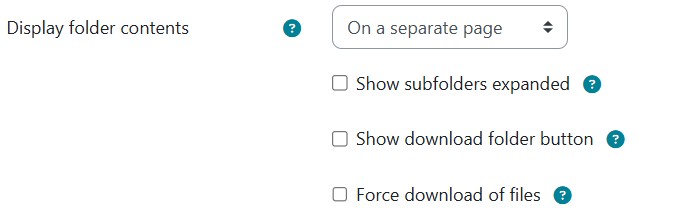 Step 7 : in Display folder contents, decide how you want the folder contents to display, and whether you want to include a Download button so so students may download the files as a zipped folder for viewing offline. Use the help icon for more information.