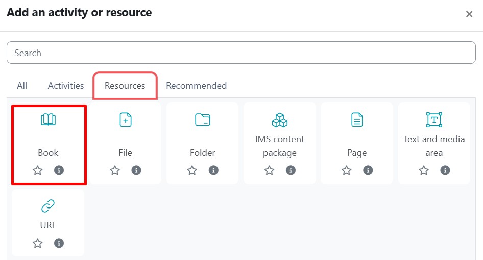 Step 4 : Go to the Resources tab and click the Book icon. The Adding a new Book page will open.