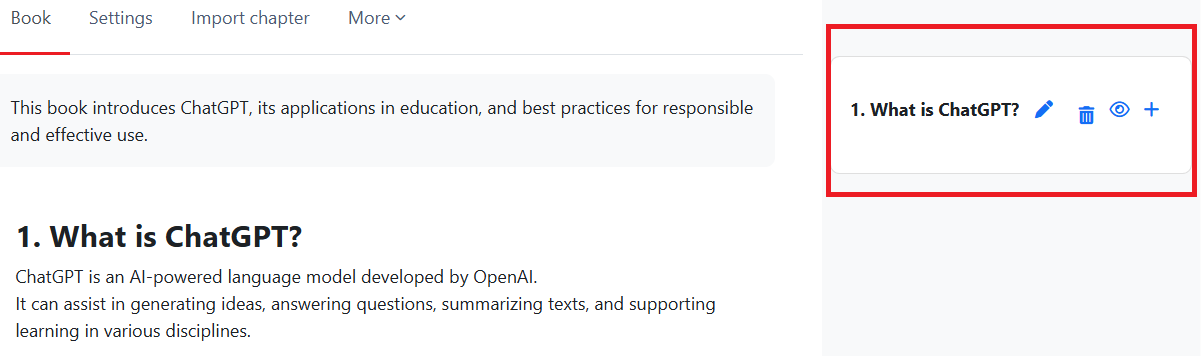 - ➕ (plus icon) – Add a new subchapter under the selected chapter.